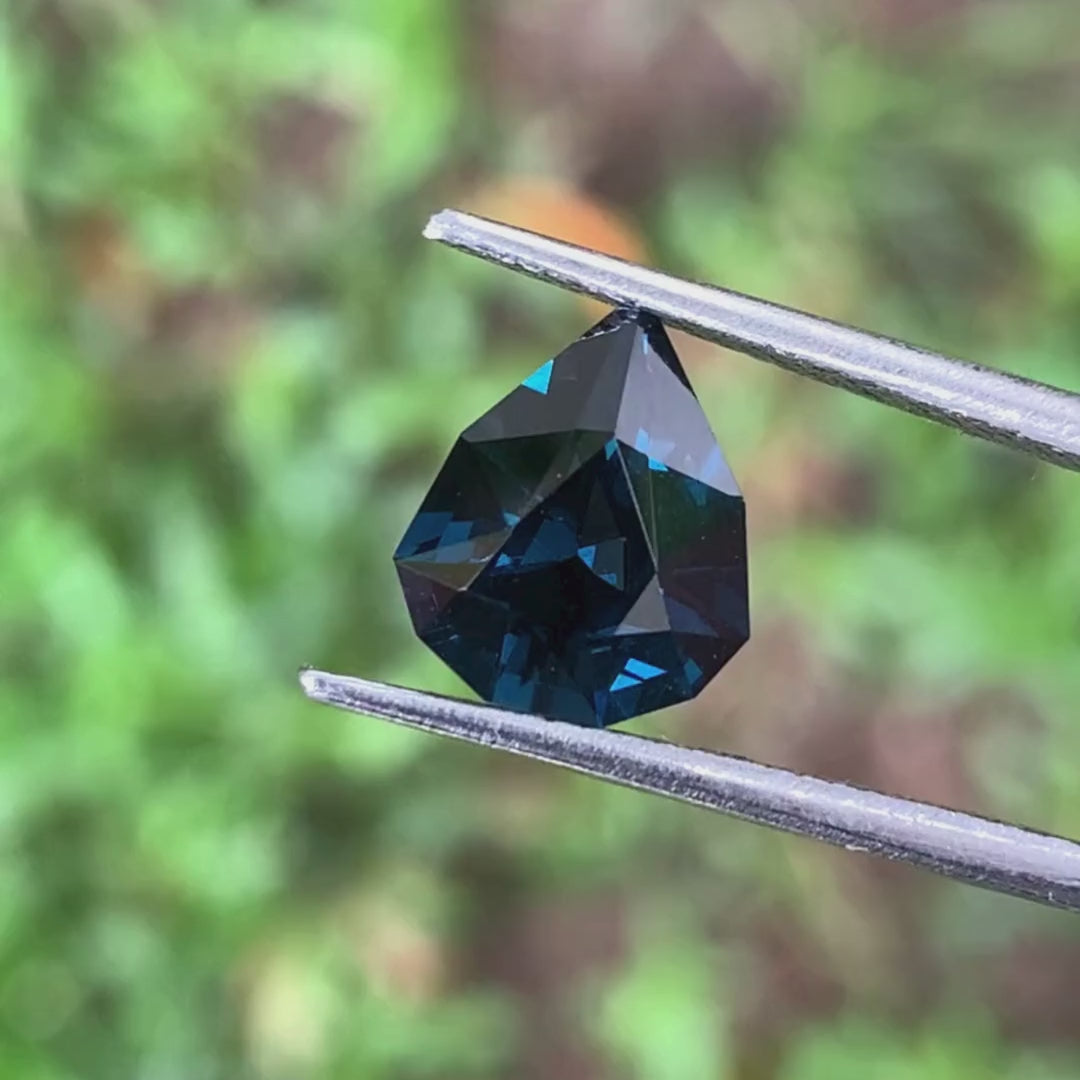 This teal blue spinel boasts a stunning shield cut, offering a balance of elegance and uniqueness. Its vivid color and exceptional clarity make it a perfect choice for creating bespoke jewelry, such as statement rings or pendants.