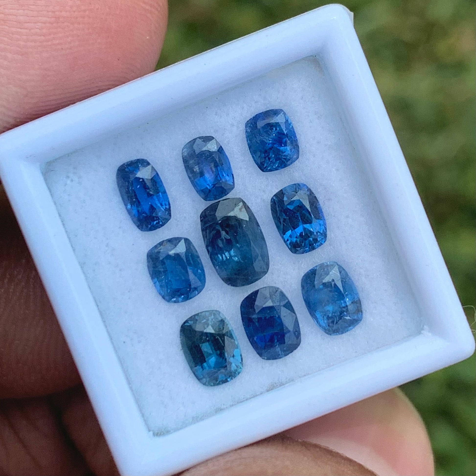 Title - Blue Sapphire Rectangular Cushion Natural Heated 4.67 Ct Loose Gemstone Parcel 9 Stones