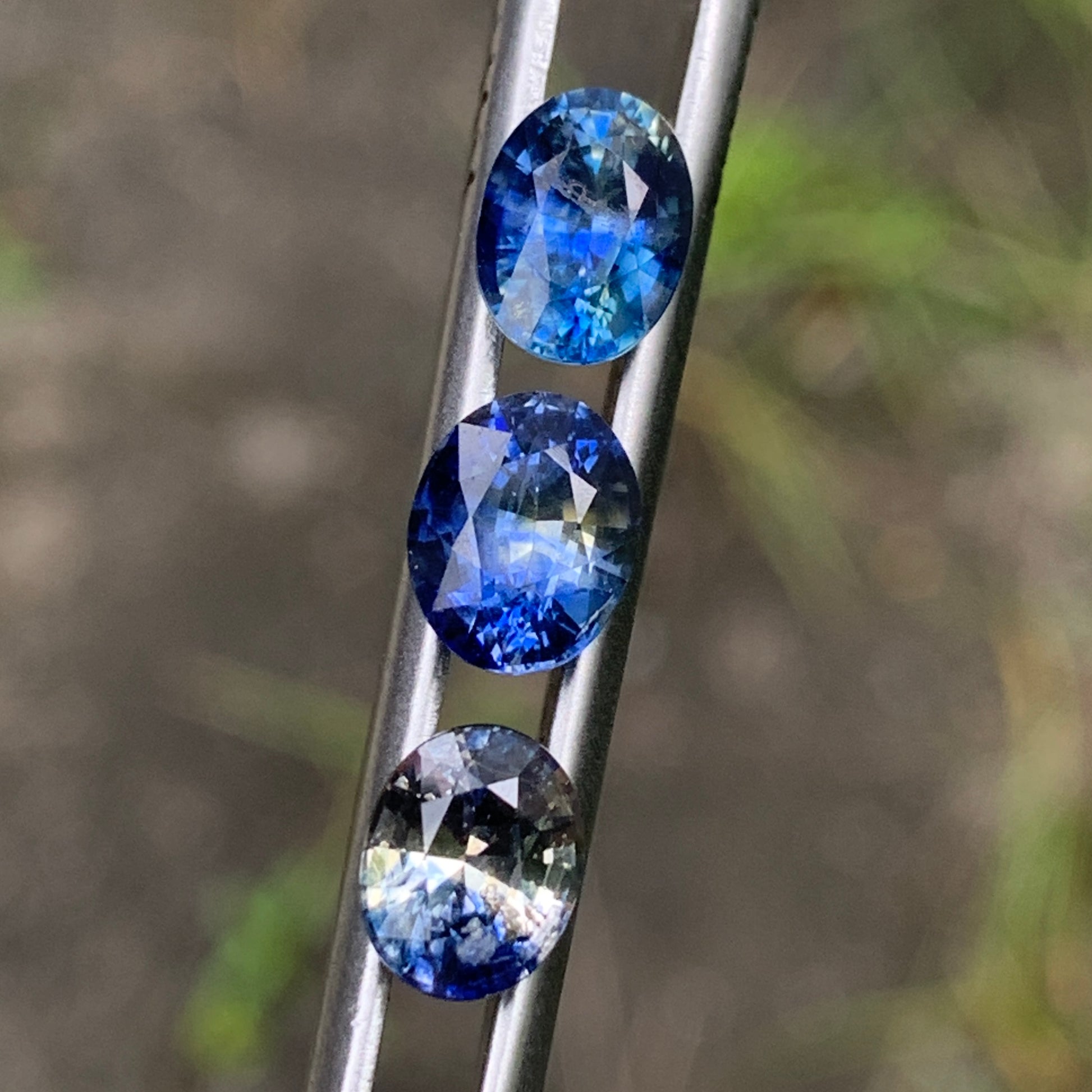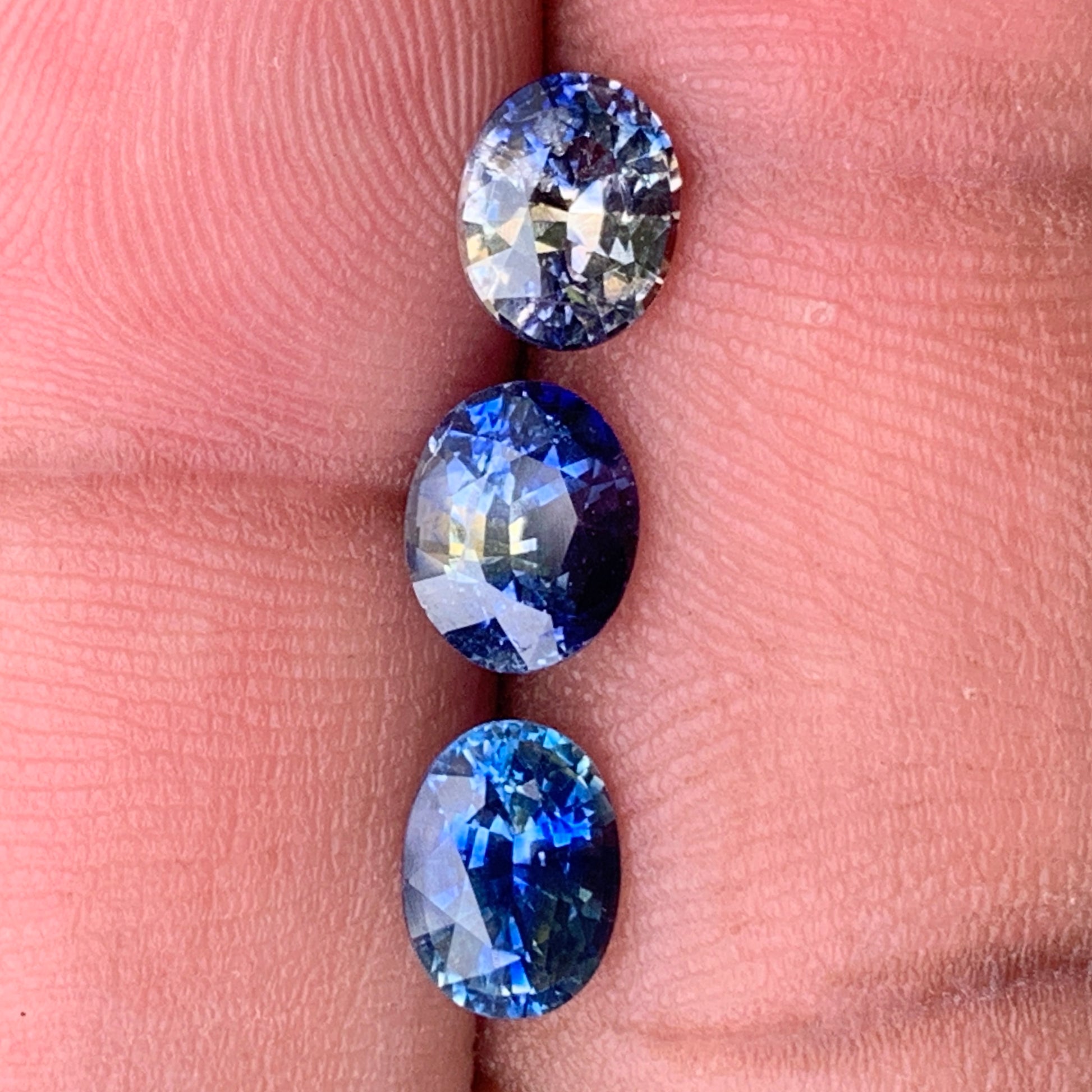 Title - Blue & Yellow Bicolor Sapphire Ovals Natural Heated Only Loose Gemstones 4.30 Ct / 3 Stones From Sri Lanka