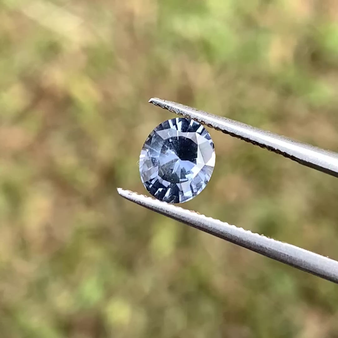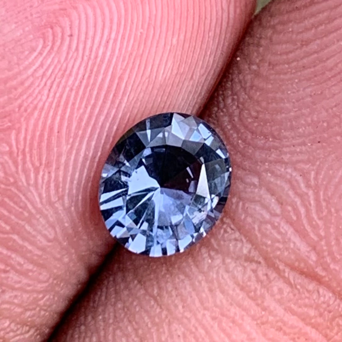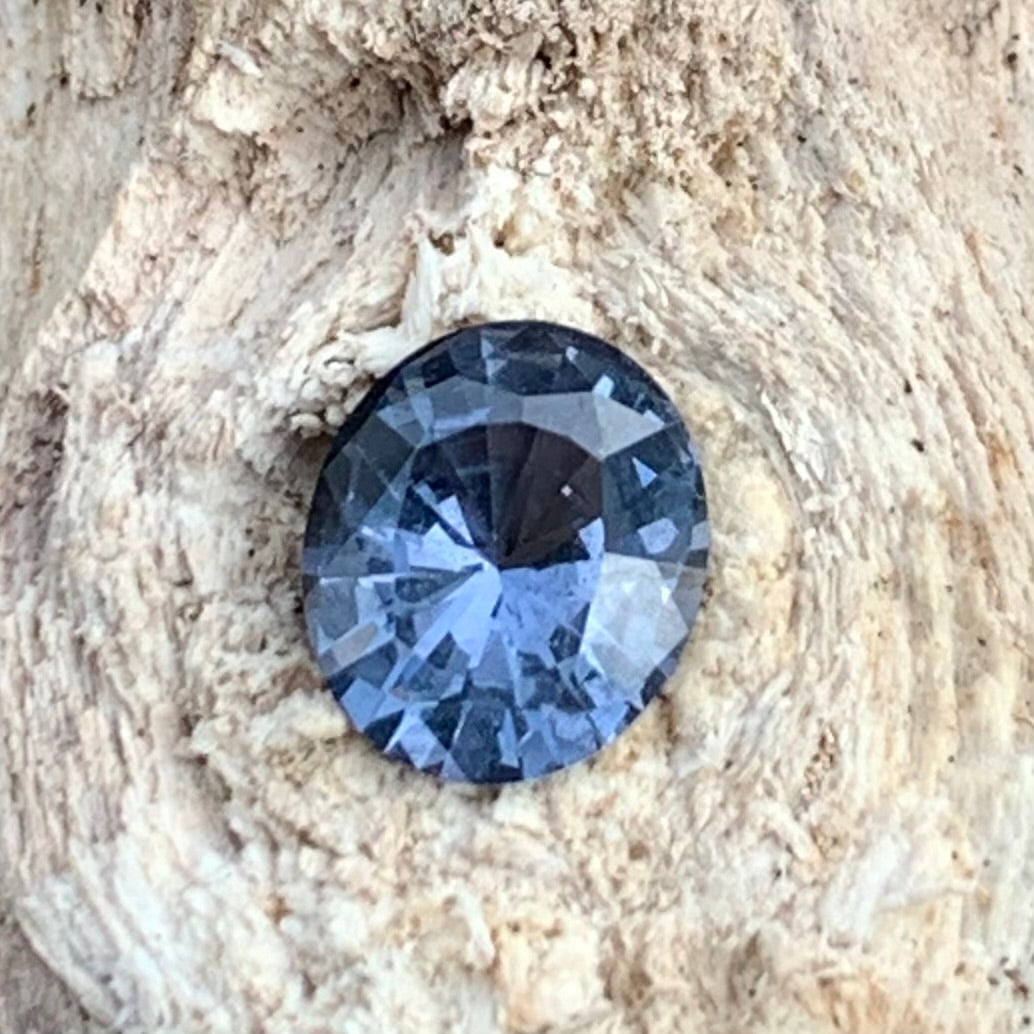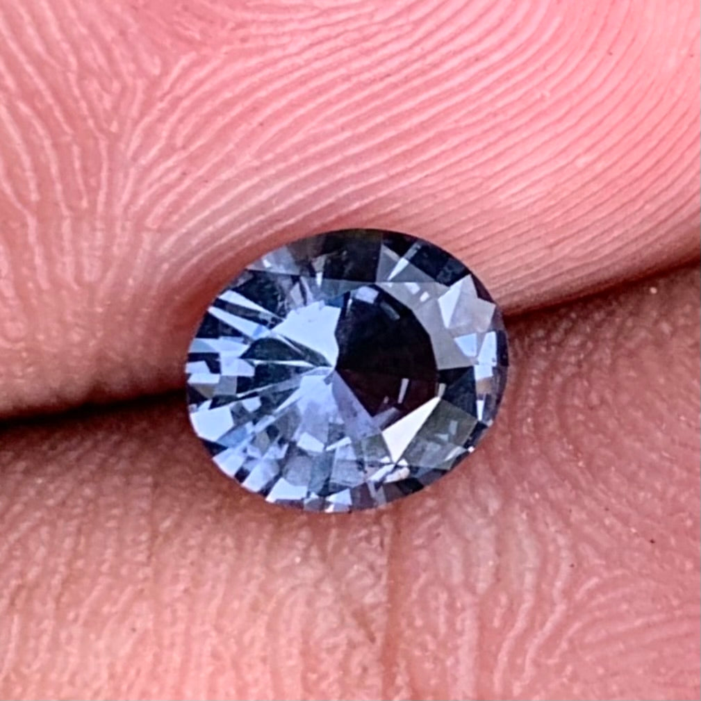 This elegant grayish blue spinel is masterfully cut in an oval shape by Ceylon Gems & Lapidary,