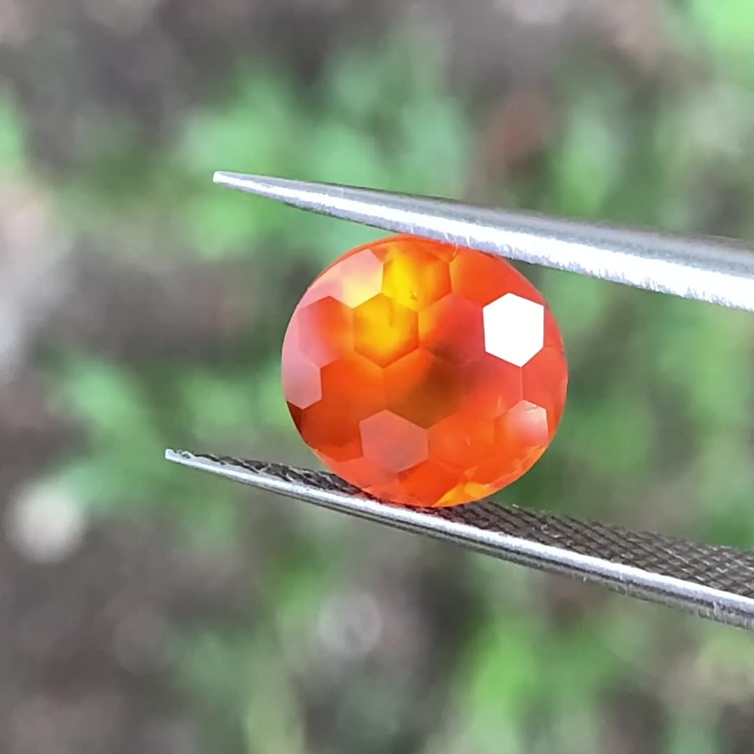 Title - Orangish Garnet Round 8.2 mm / 2.58 Ct Fancy Football Cut Loose Gemstone For Contemporary Jewelry