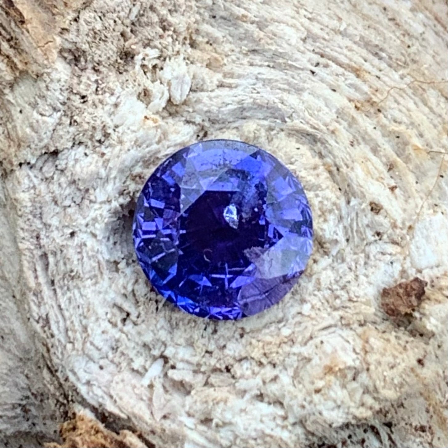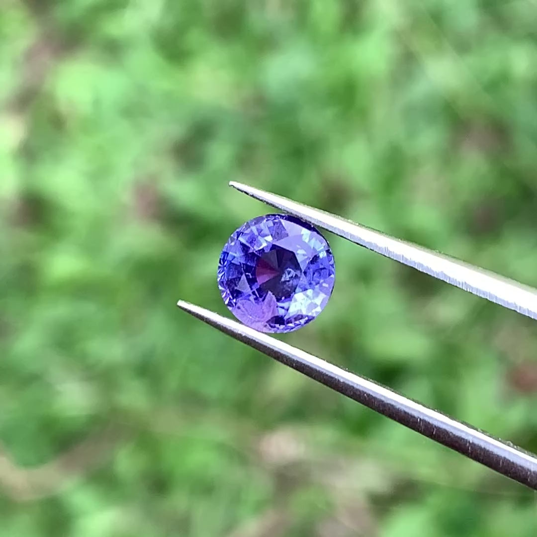 This captivating Purplish Blue Bicolor Sapphire is expertly Round Cut to reveal a mesmerizing blend of hues that shift beautifully in the light.