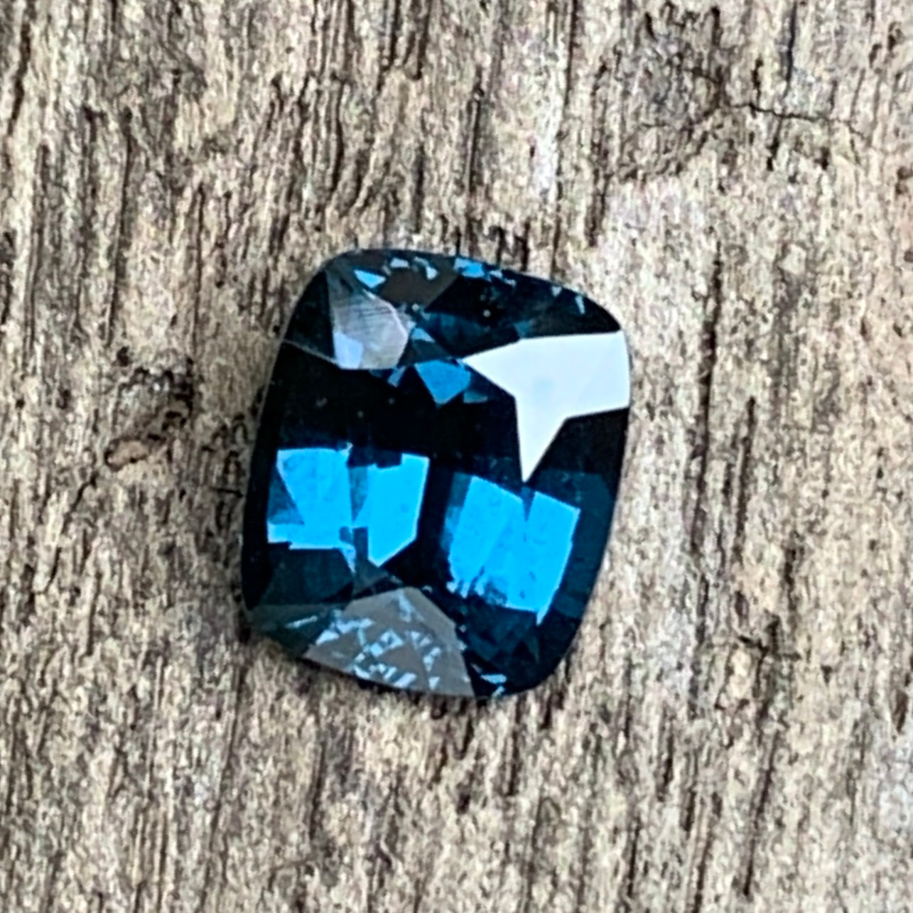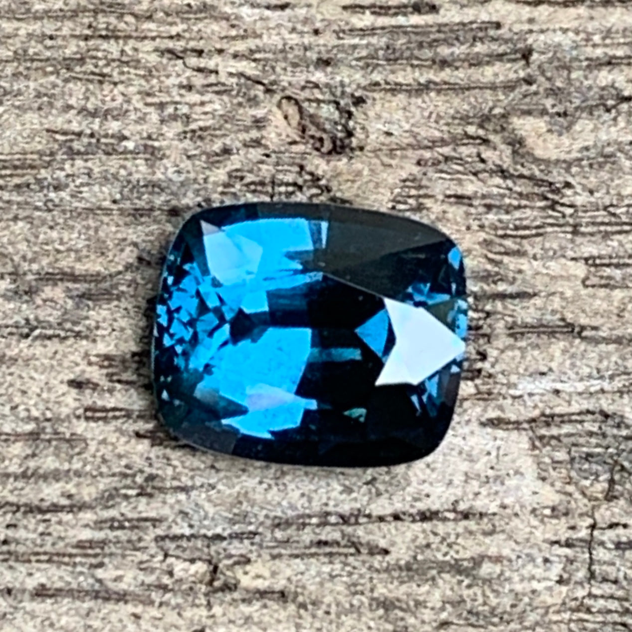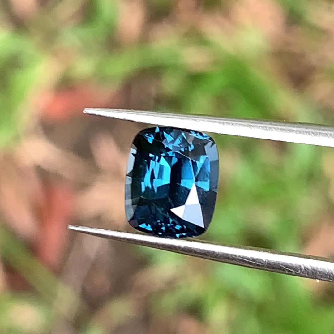 This captivating teal blue spinel has been expertly cut in a rectangular cushion shape, maximizing brilliance and luster.