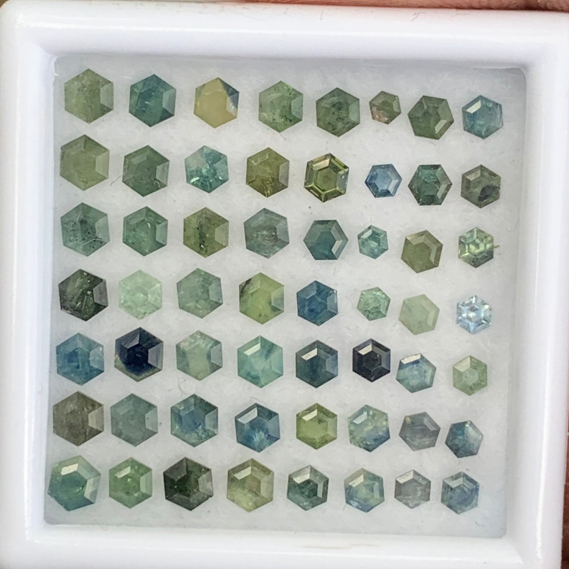Title - Unheated Green Teal Bluish Sapphire Hexagons Natural Loose Gemstone Parcel 8.51 Ct / 56 Gemstones From Sri Lanka