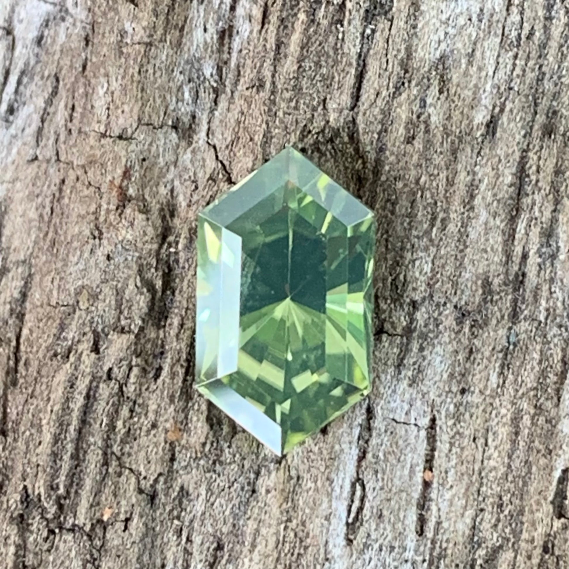 Title - Yellowish Green Zircon Elongated Hexagon Precision Cut 1.23 Ct Ceylon Natural Loose Gemstone